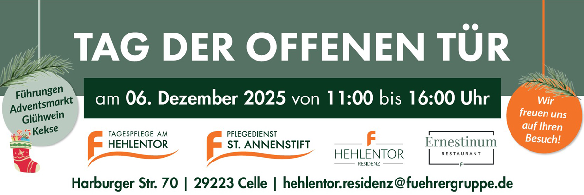 Am Rande der schönen Stadt Celle, die mit ihren fast 400 verschiedenen Fachwerkhäusern sowie einem Schloss im Stil der Renaissance auch als südliches Tor zur Lüneburger Heide gilt und zu den schönsten Städten Deutschlands zählt, liegt unsere exklusive Hehlentor Residenz mit Tagespflege. Unsere Tagespflege bietet den Gästen eine einladende und abwechslungsreiche Tagesgestaltung, die auf die individuellen Bedürfnisse und Wünsche aller Tagespflegegäste abgestimmt ist. Ob Gedächtnistraining, Bewegung, Kreativität, Sinnesanregung, Musik und Rhythmik, Kulturelles sowie Entspannung – bei uns finden Sie zahlreiche Möglichkeiten, Ihren Tag aktiv und sinnvoll zu gestalten.